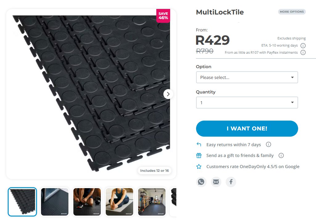Lock Floor Tile – Ideal for Home-Gym or Garage flooring.